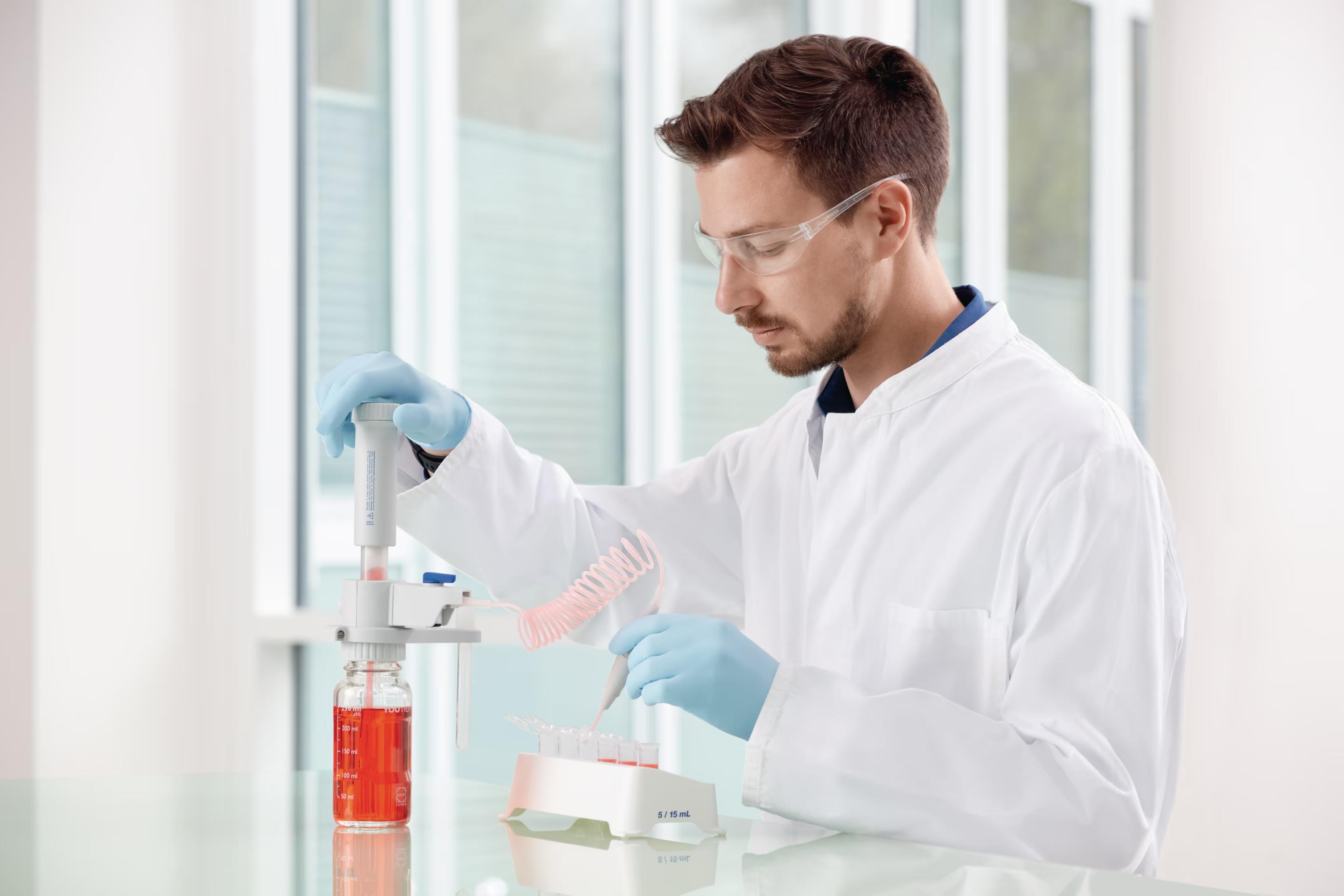 For laboratory tasks with aliquots of aggressive solutions like lyes, acids, bases or solvents taken from large supply and reagent bottles, bottle top dispensers need to be universally applicable and of uncompromising quality. The extra air vent cap with Luer-cone for the assembly of a microfilter prevents possible contamination from the supply bottle. Because of the GL 45 thread on all sizes, Varispenser 2 and Varispenser 2x can be used on most common bottle threads in the laboratory. Depending on the chosen size, Varispenser 2 and Varispenser 2x come with 3 or 5 additional thread adapters.