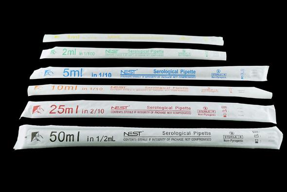 serological pipettes can be used in biological research such as tissue culture and bacterial culture. They are made of highly transparent polystyrene and are individually packaged in paper-plastic bags. Pipettes of different specifications are distinguished by different colors.